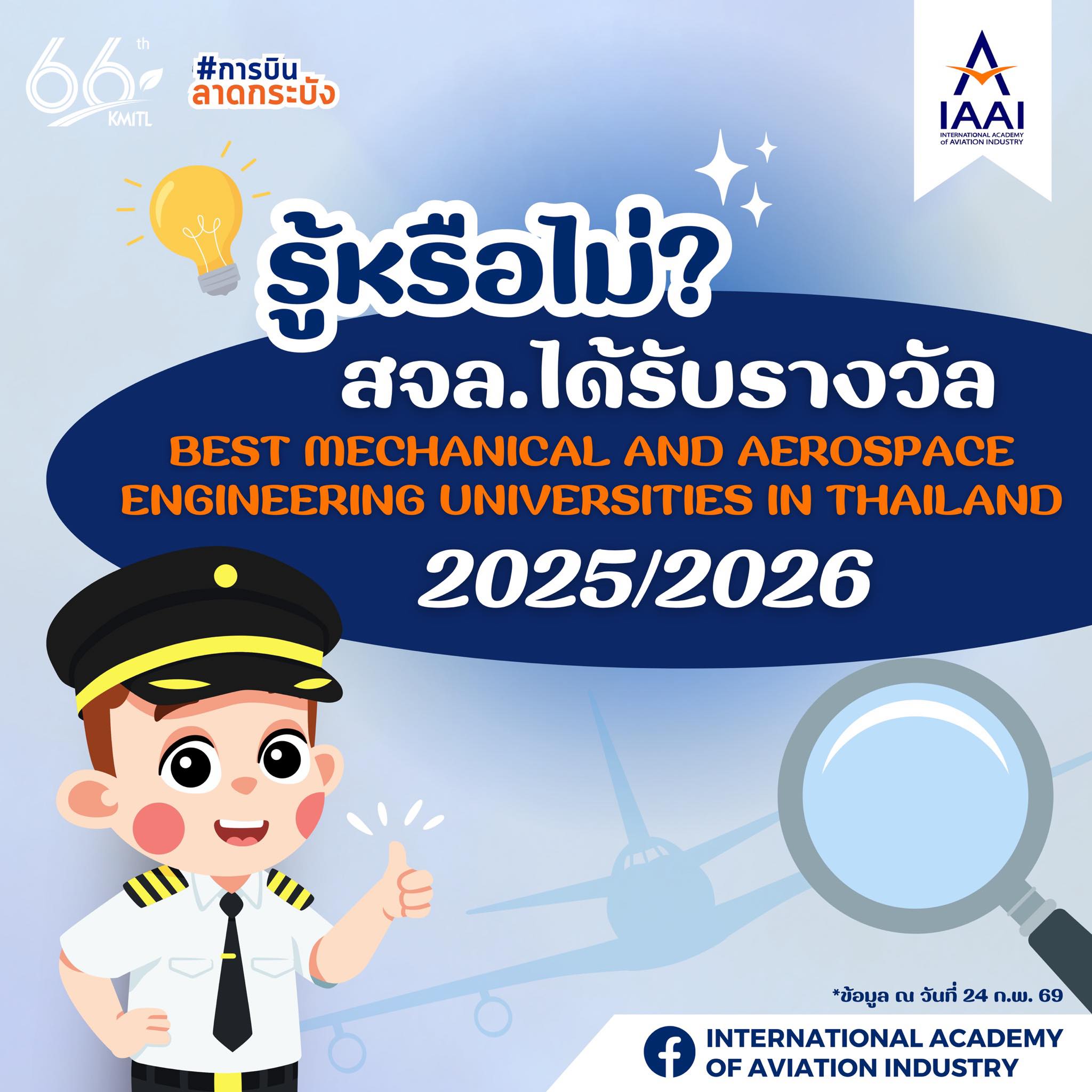 🏆 สจล.ได้รับรางวัล Best Mechanical & Aerospace Engineering Universities in Thailand 2025/2026 🇹🇭February 24, 2026ByadminAnnouncements, News, Pin0
