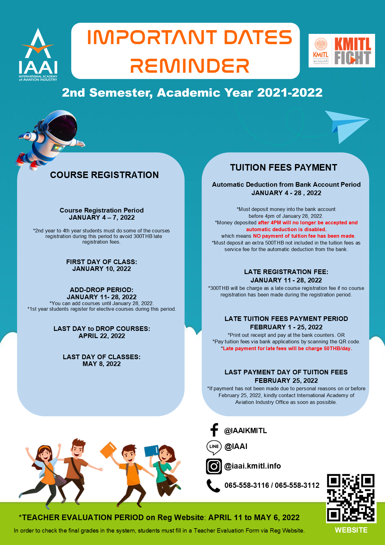 Announcement of important dates to remember for the 2nd Semester – Academic Year 2021 – 2021. 🐔Course Registration and Tuition Fees Payment. 🐔