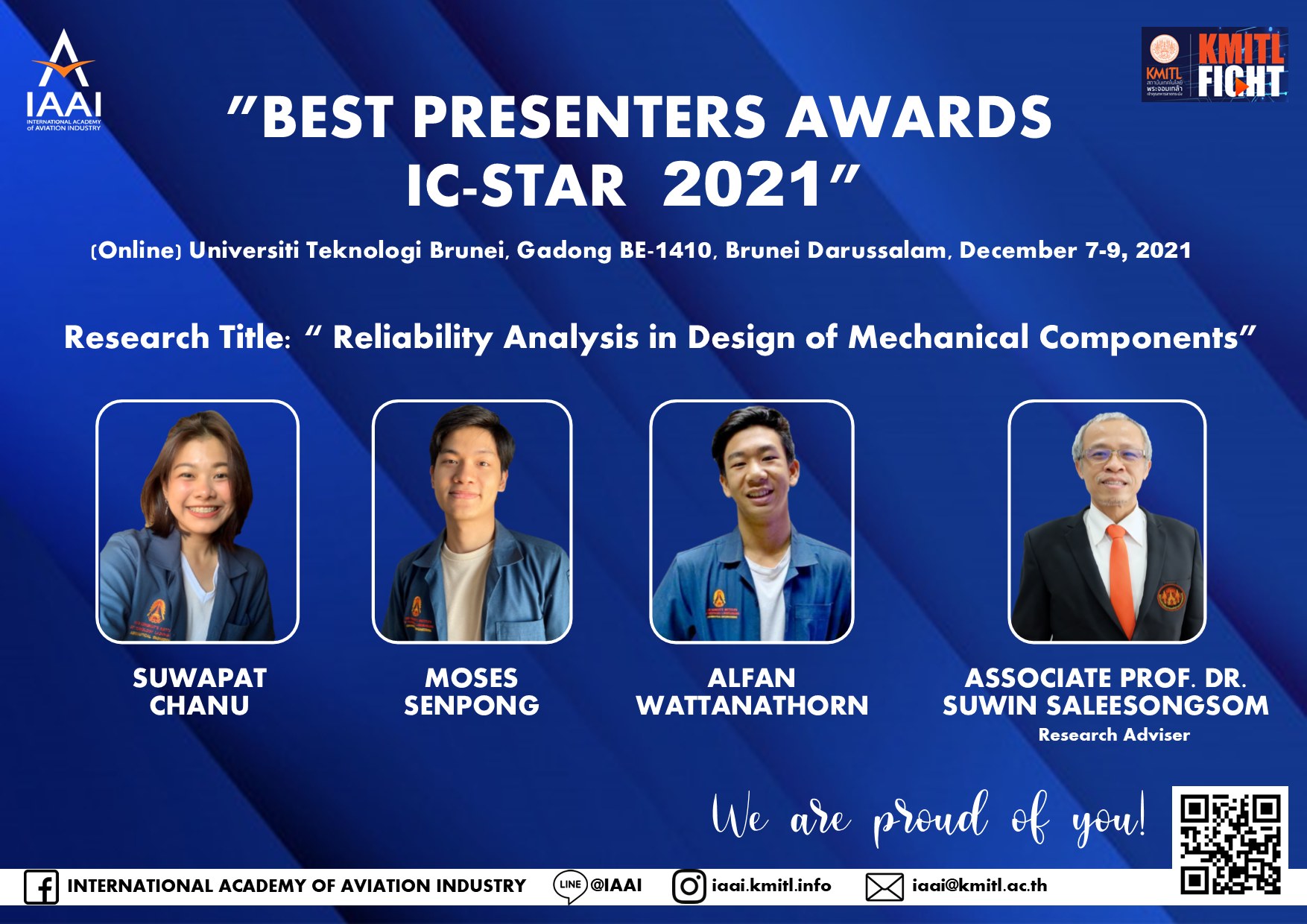 📢 Congratulations to IAAI – KMITL for having won the “Best Presenters Award” in this year IC-STAR 2021!
