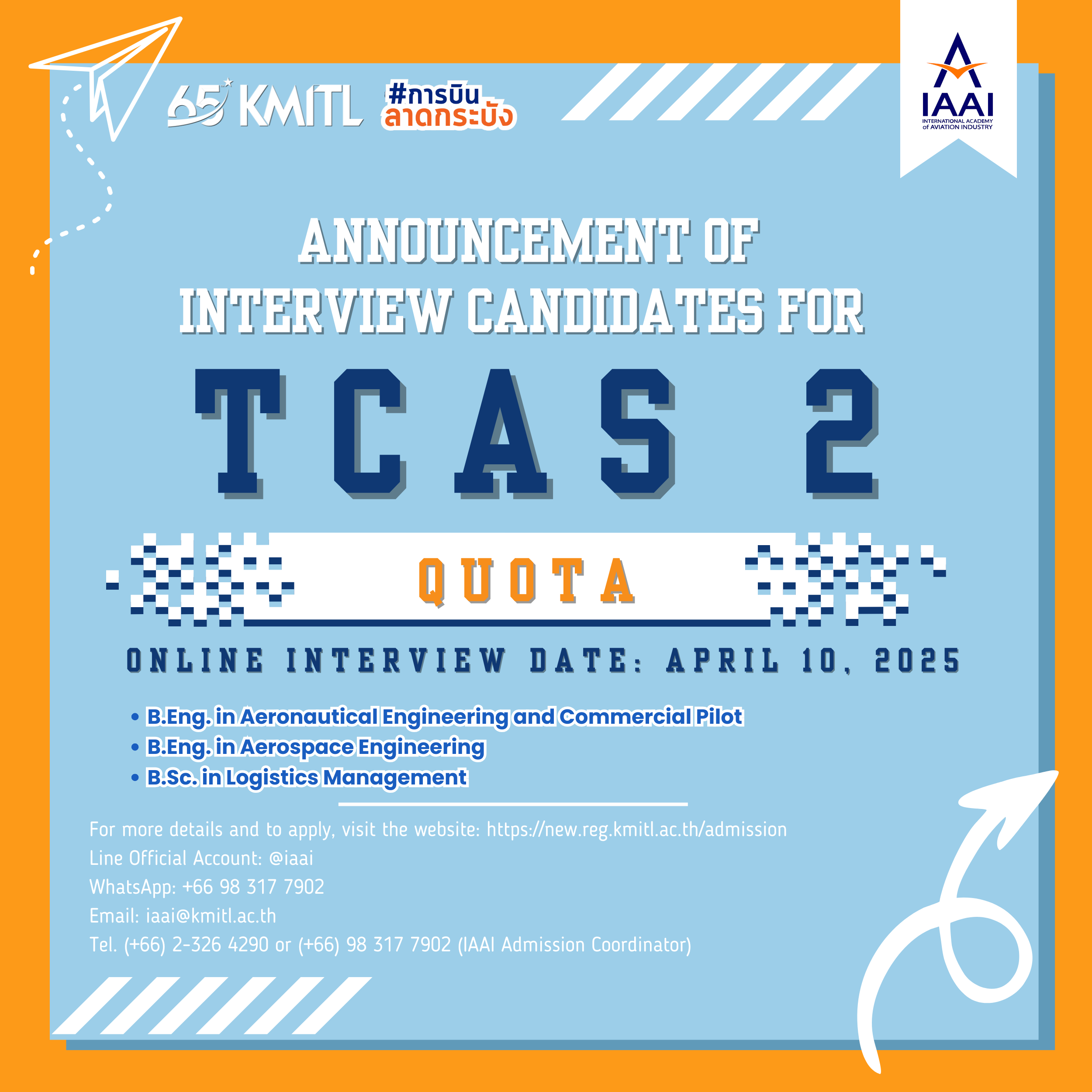 📢 รายชื่อผู้มีสิทธิ์ตรวจร่างกายค่ายเตรียมศึกษาต่อวิทยาลัยอุตสาหกรรมการบินนานาชาติ ประจำปีการศึกษา 2025 (ครั้งที่ 2)March 6, 2025ByadminAnnouncements, News0